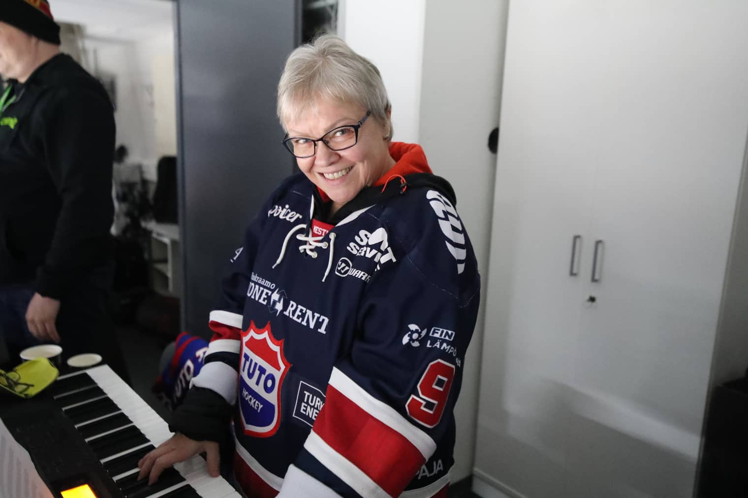 TUTO Hockeyn urkuri Elina Haavisto elementissään. Piti oikein höristää korviani. Kuulinko oikein. Nostalgista urkumusiikkia Kupittaan jäähallissa – ihan kuin liki 50 vuotta sitten TPS:n kotiotteluissa,