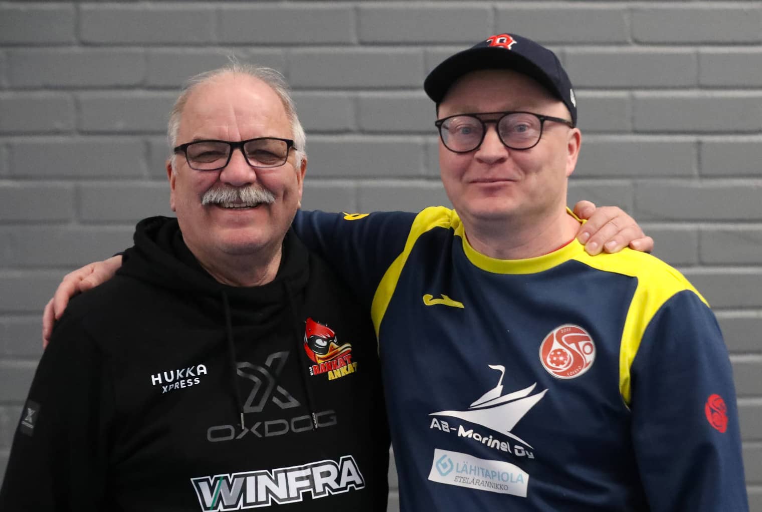 Kaksi salibandylegendaa, Seppo Pulkkinen ja Matti Pienihäkkinen. Molemmilla on takana vuosien kokemus valmentamisesta. – Tänä vuonnakin pystymme jo varmasti kiusaamaan kaikkia, mutta tulevaisuudessa mestaruuden voittaminen