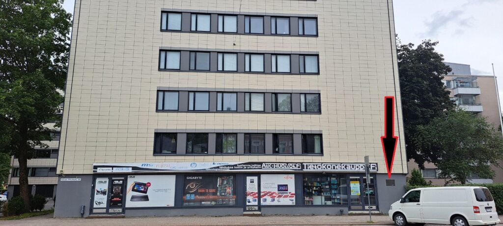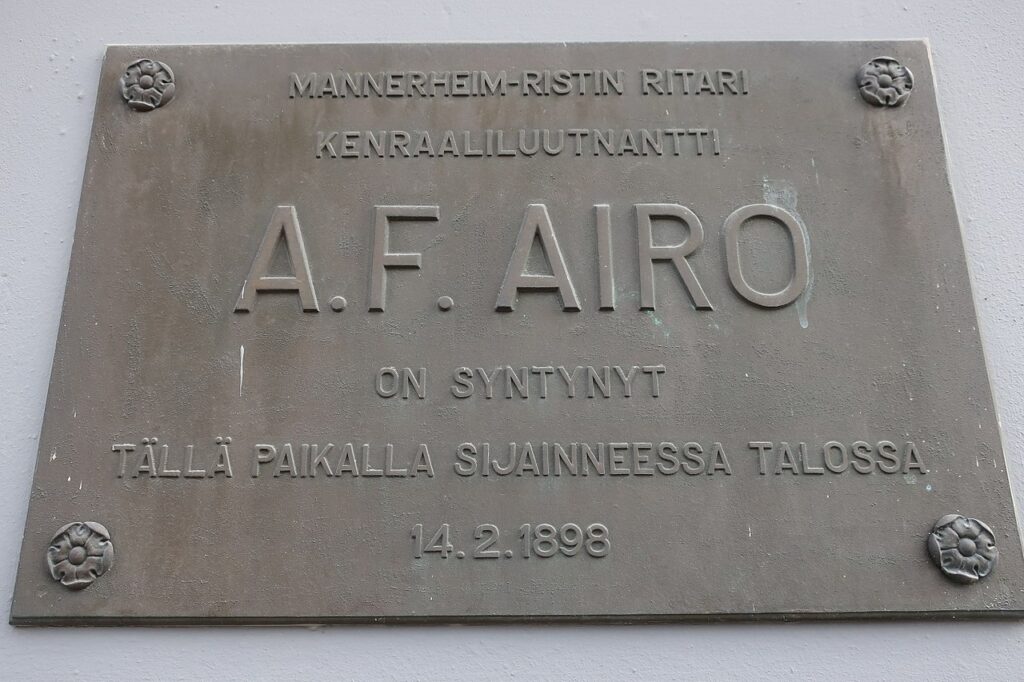 Mannerheim-ristin ritari kenraaliluutnantti A.F. Airo on syntynyt tällä paikalla sijainneessa talossa 14.2.1989.