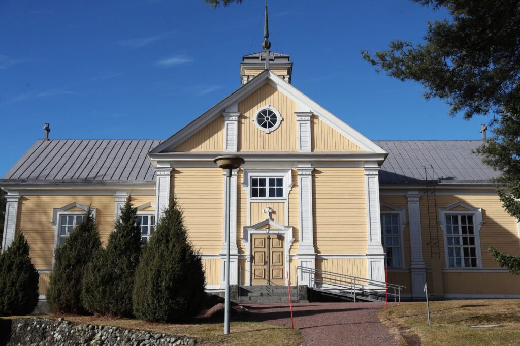Ensimmäisestä kirkosta on peräisin nykykirkossa nähtävänä oleva puinen kastemalja.