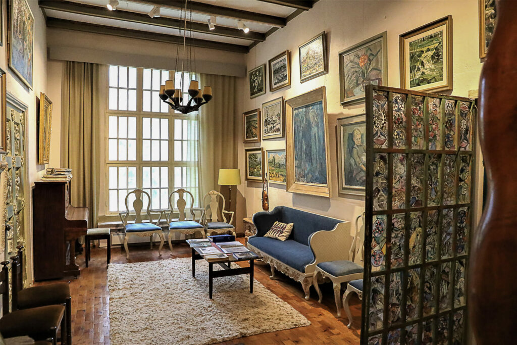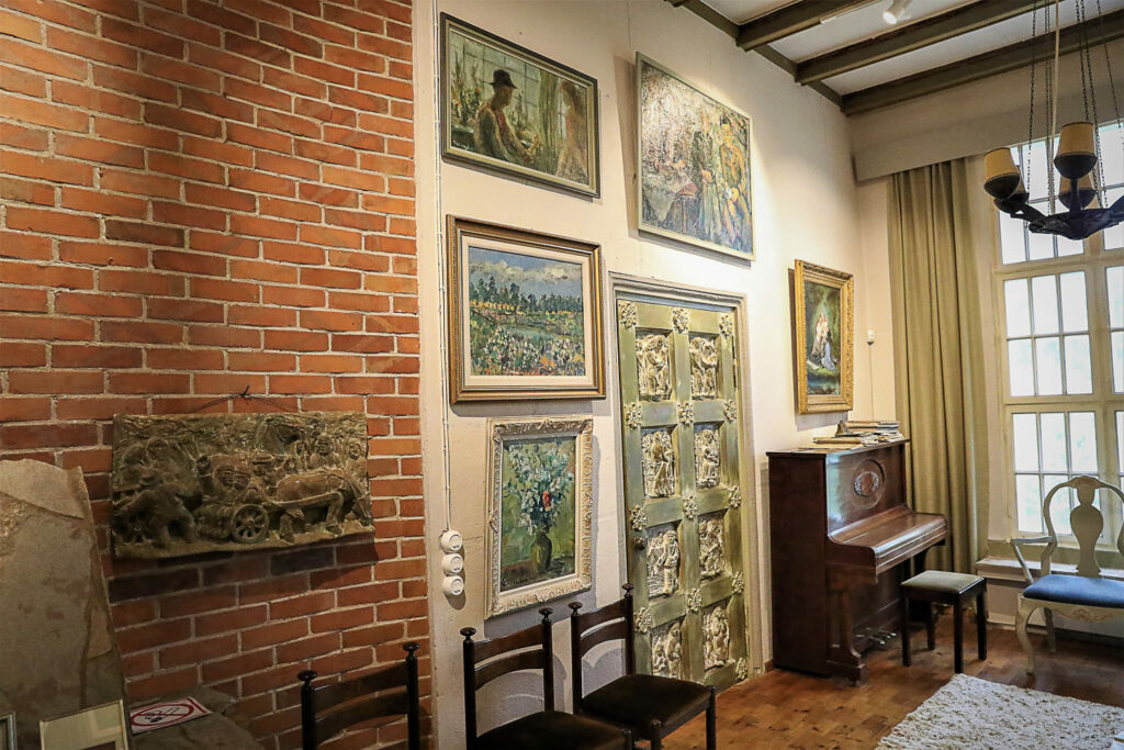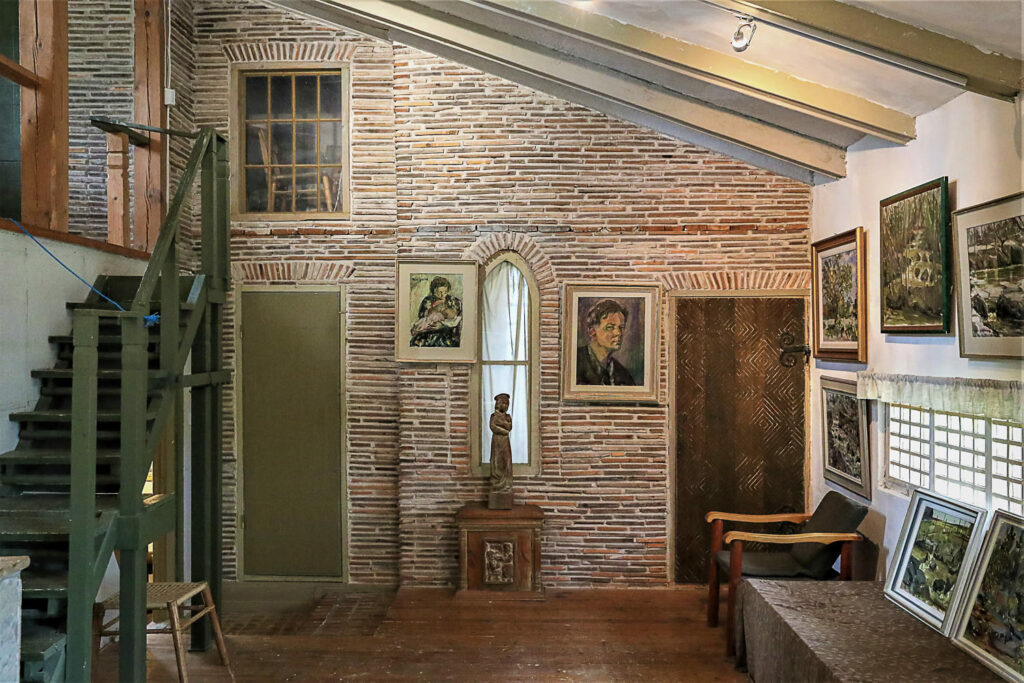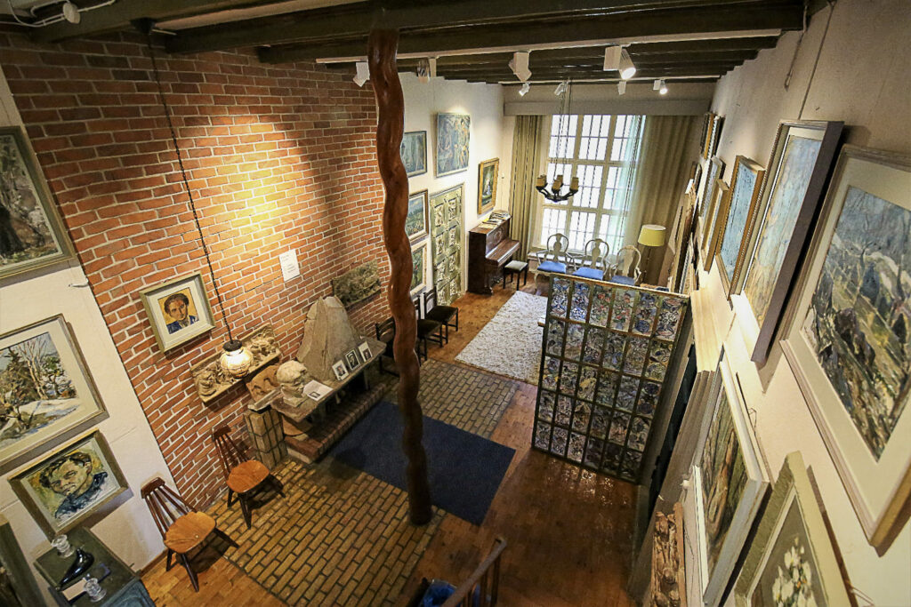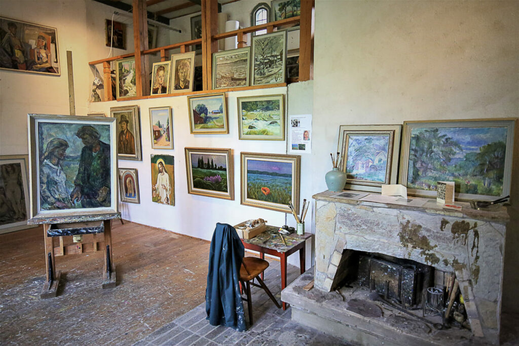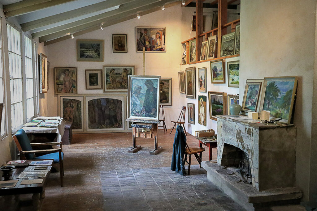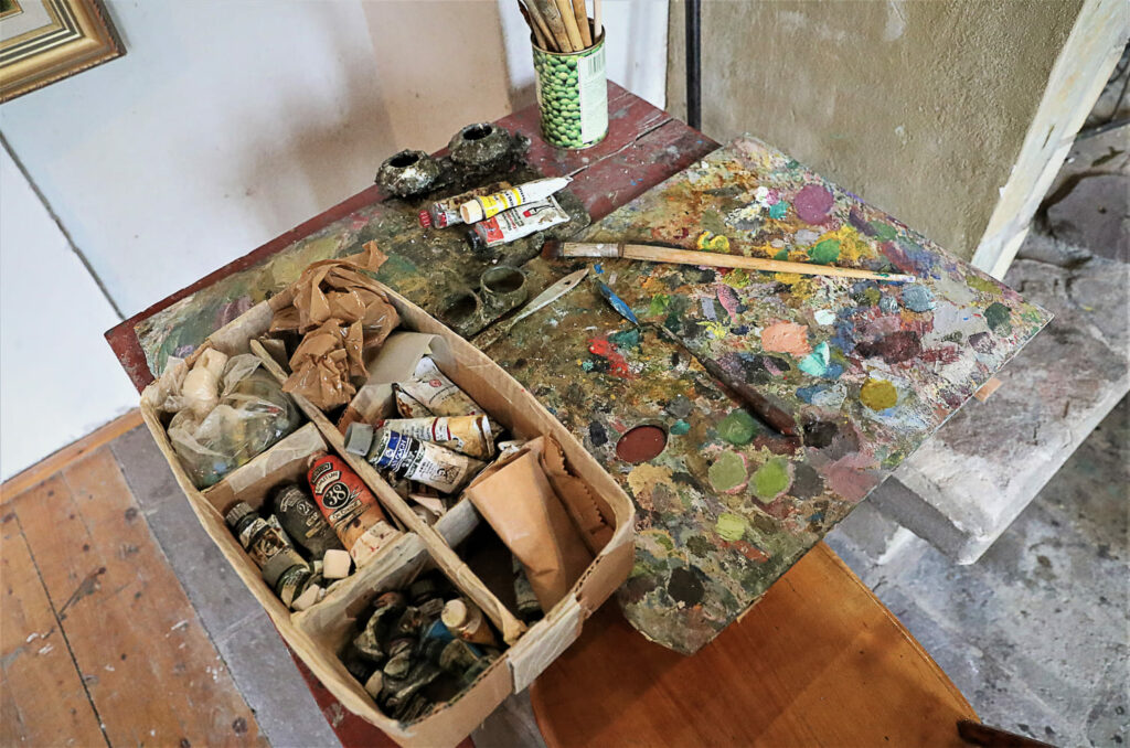 Aulasta noustaan portaita pitkiin kodin yläkertaan, missä sijaitsee taiteilijan ateljee. Se oli suunniteltu niin, että sinne tulvi mahdollisimman paljon valoa. Lattiassa näkyy yhä taiteilijan jättämiä maaliroiskeita.