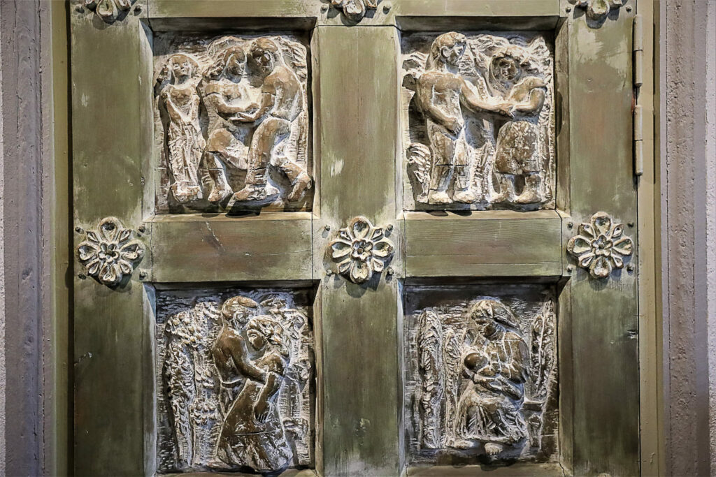Eräs erikoisuus on aulasta pariskunnan makuuhuoneeseen johtava koristeellinen ovi. Itse asiassa juuri sen Syrjämä teki ensimmäiseksi ennen asuntonsa rakentamista. Oven materiaali saatiin Pappilan sotapakkasten tappamista omenapuista.