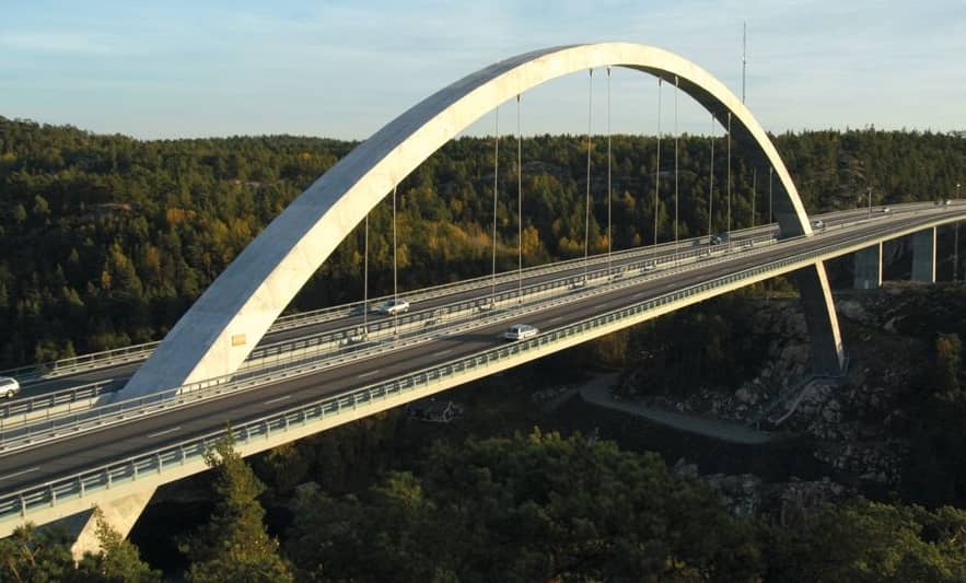 Ruotsin ja Norjan rajalla on kaksi siltaa: vanha ja uusi. Molemmat ovat maksullisia Vanhempi betonirakenteinen silta valmistui vuonna 1945. Norjan kuningas ja Ruotsin kruununprinssi olivat vihkimässä Euroopan korkeimman sillan (67 metriä merenpinnasta) käyttöön. Alla virtaa Iddefjord, joka tekee juuri siltojen kohdalla jyrkän mutkan etelään. Valtakunnan raja kulkee vuonon keskellä.