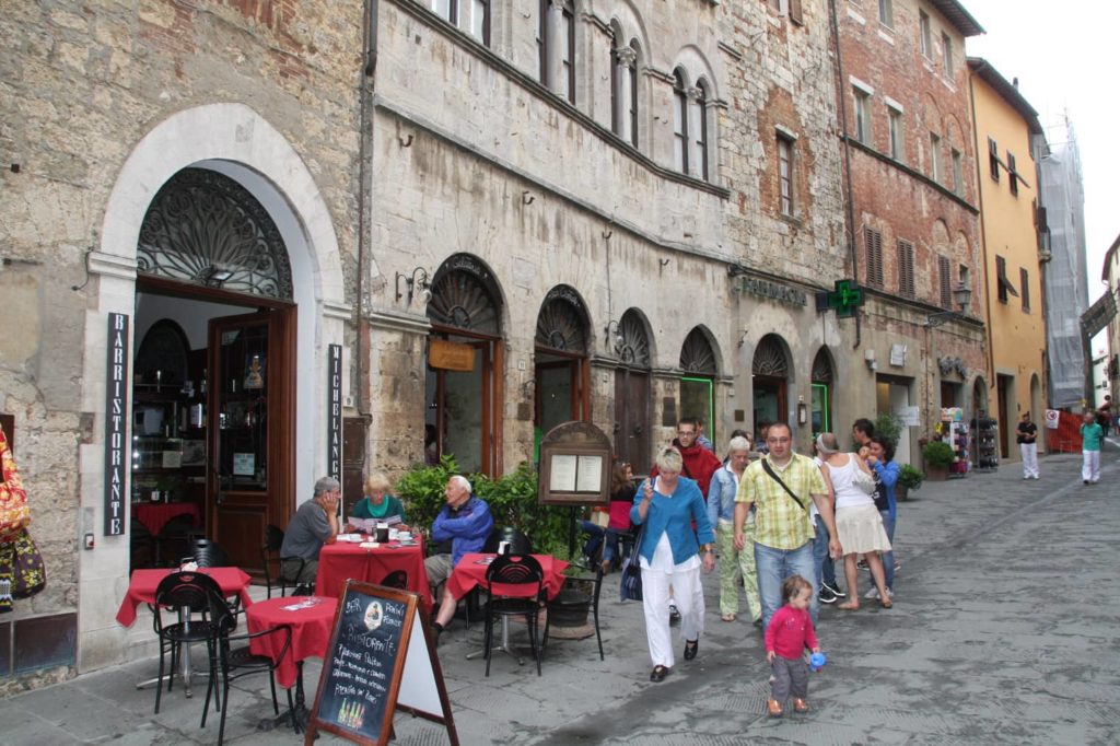 Matkailijat kulkevat edestakaisin vanhankaupungin kapeilla kujilla. Autoliikenteen puuttuessa tunnelma on miellyttävä. Hiljaisella pääaukiolla, Piazza Giuseppe Giustilla on useita ulkoilmaravintoloita, matkamuistomyymälöitä ja keramiikkakauppoja. Kahvilan pöydästä voi ihailla loputtomiin idyllistä kaupunkinäkymää.