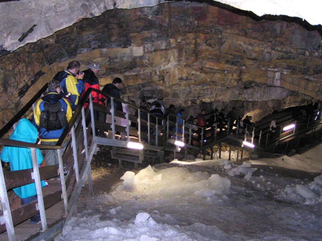Vieraat pääsevät tutustumaan maanalaiseen maailmaan opastetulla kierroksella, joka kestää noin 45 minuuttia ja on 500 metriä pitkä. Sisätiloissa ei joudu liukastelemaan, sillä kulku on tehty turvalliseksi. Luolan isoimmassa salissa Suuressa salissa pidetään toisinaan konsertteja. 1950-luvulla tasaisella jäänpinnalla järjestettiin jopa luistelunäytöksiä.