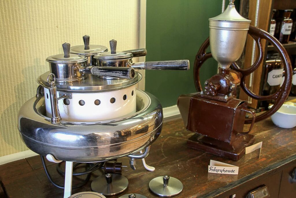 Löytyypä apteekkimuseosta perinteiset pelikortitkin. Taipuisina niitä voitiin käyttää voiteen keräämiseen ja näin pelikortin avulla saatiin astian seinämät puhdistettua.