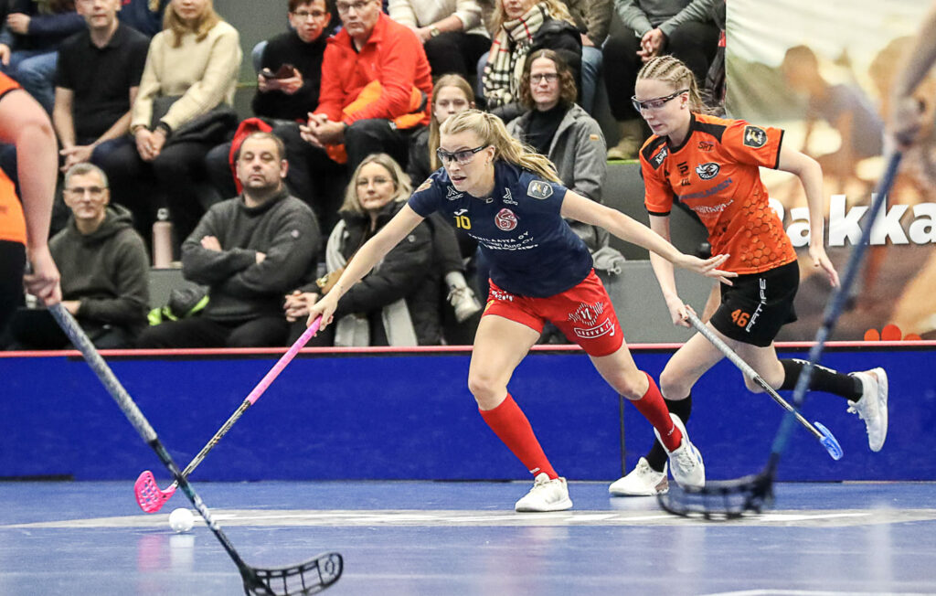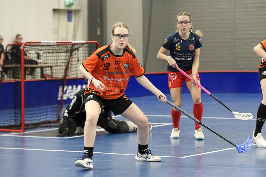 Katsojia on kourallinen. Lähinnä isät ja äidit, mummit ja vaarit sekä parhaat kaverit ovat katsomossa. Samaan aikaan Turussa pelataan F-liigan paikallisottelu TPS – FBC Turku Kupittaan palloiluhallin kirkkaissa valoissa. Harmillisen päällekkäisyyden takia FBC Loiston ja O2-Jyväskylän naisten liigaottelu pelataan samanaikaisesti Raunistulan legendaarisella Salibandy Areenalla.