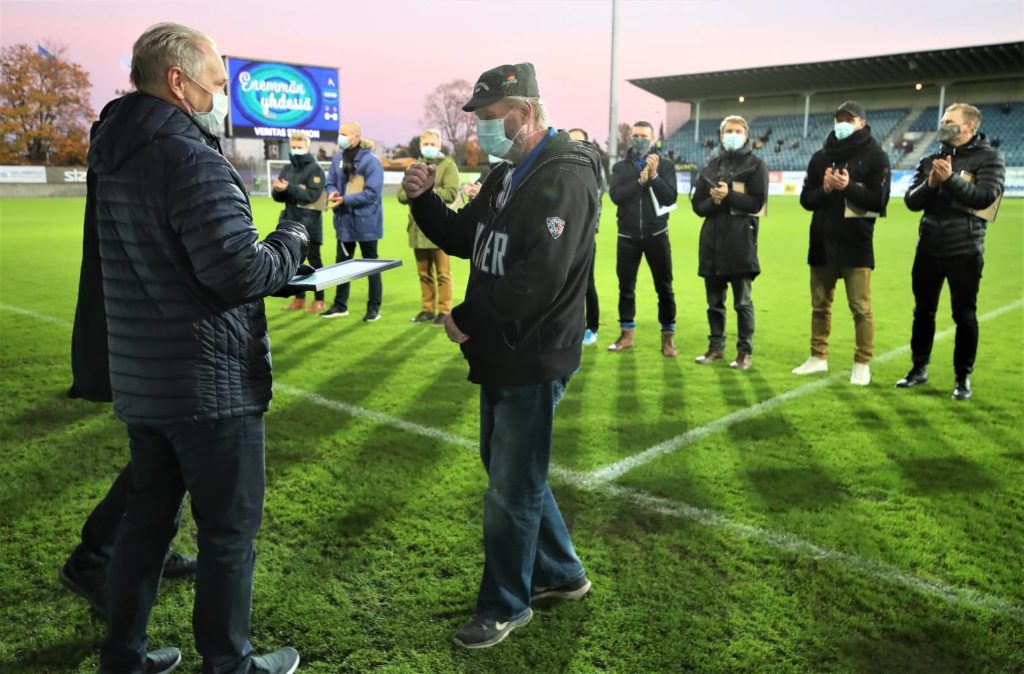 Pasi Hyvätti (vas.) ja Vesa Mäki olivat FC Interin puolesta palkitsemassa seuralegendoja.
