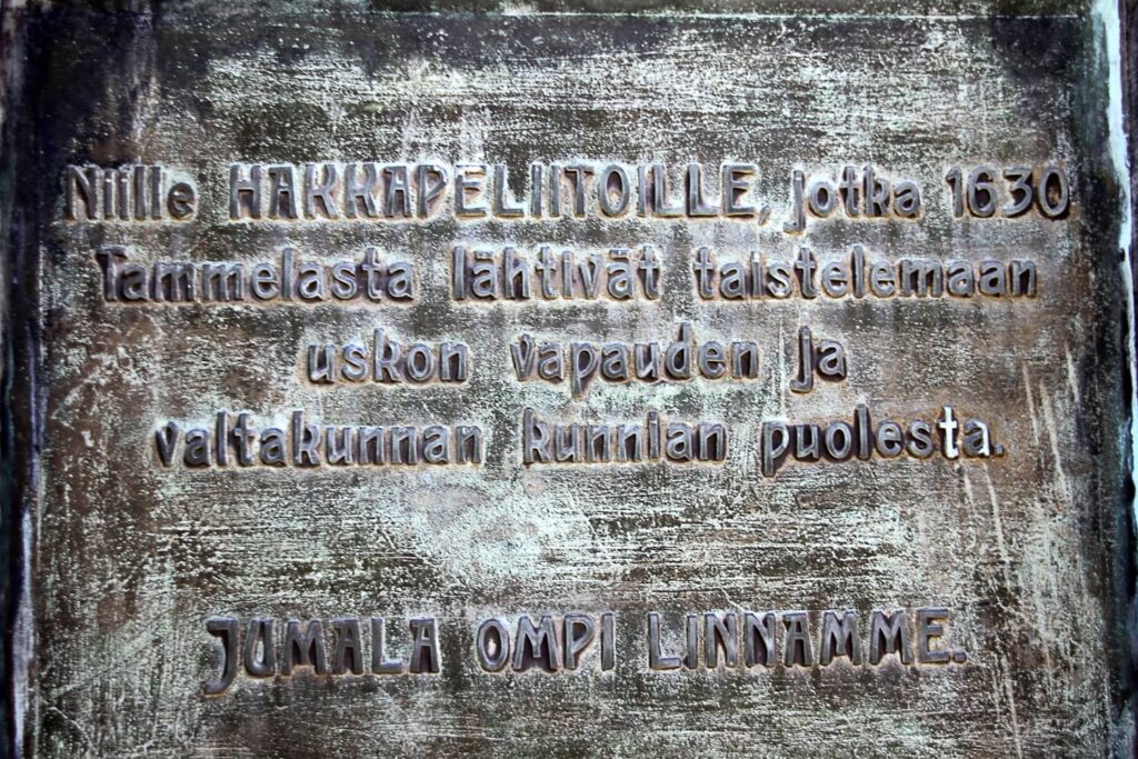 KANTA-HÄME / TAMMELA – Tammelan kirkon lähelle pienelle nurmialueelle on sijoitettu jykevä graniittinen muistomerkki. Se on omistettu niille myyttisille hakkapeliitoille, jotka lähtivät Tammelasta Saksaan taistelemaan 30-vuotisessa sodassa. Historianlähteiden mukaan Tammelasta lähti matkaan 24 hakkapeliittaa, mutta vain neljätoista palasi takaisin kotiin. Hakkapeliittojen ja maatilojen nimet on ikuistettu muistomerkin pronssilaattaan.