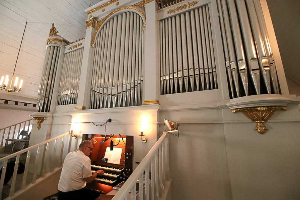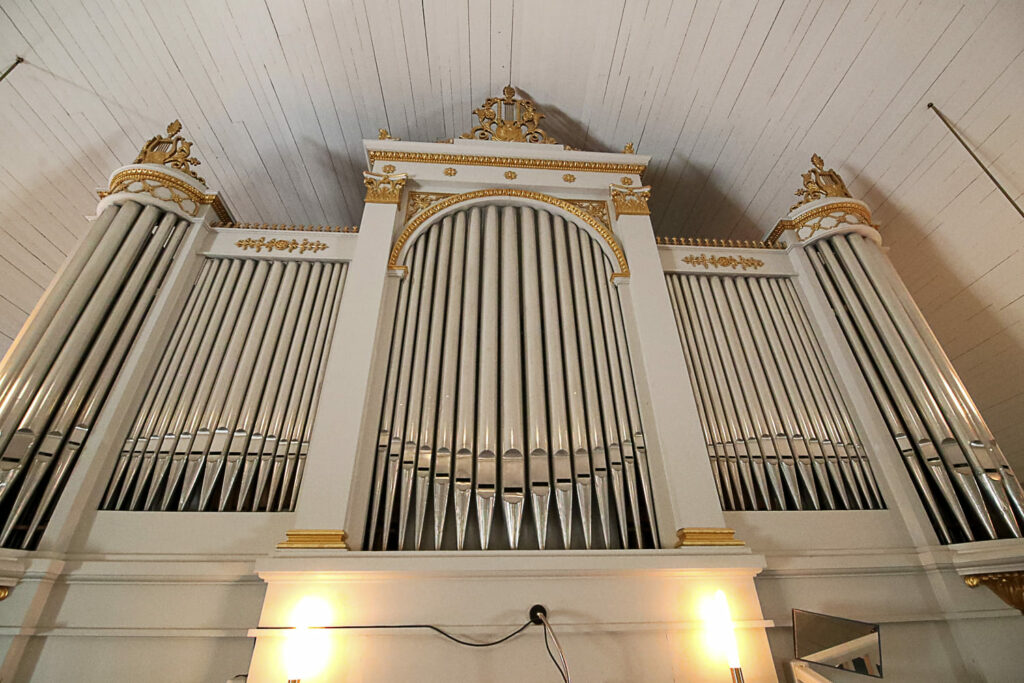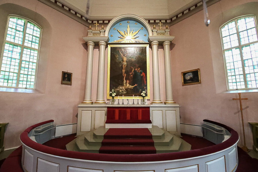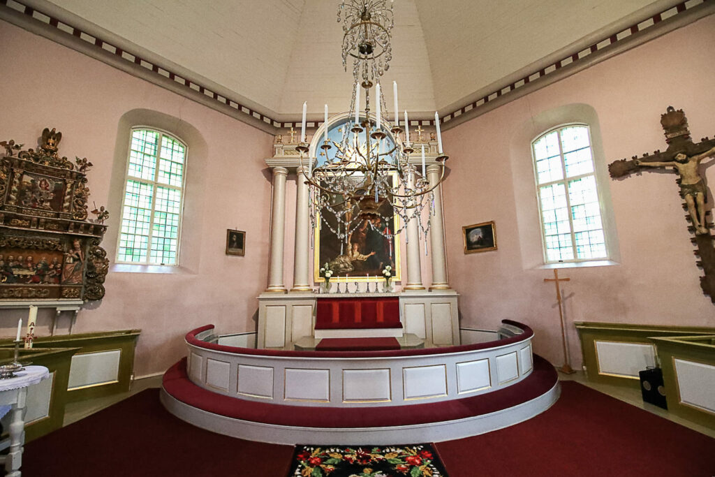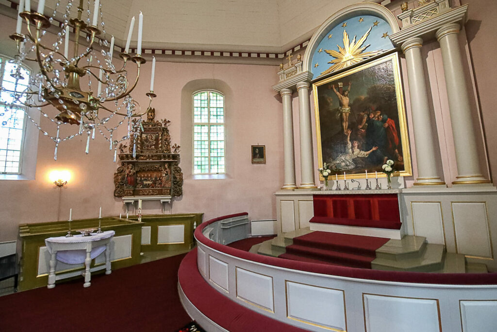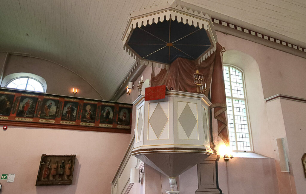 Bassi suunnitteli kirkkoon myös uuden saarnastuolin. Senkin lahjoitti August Armfelt.