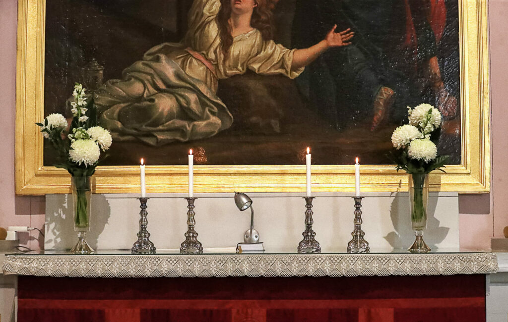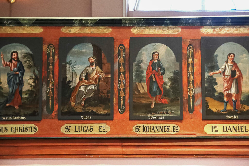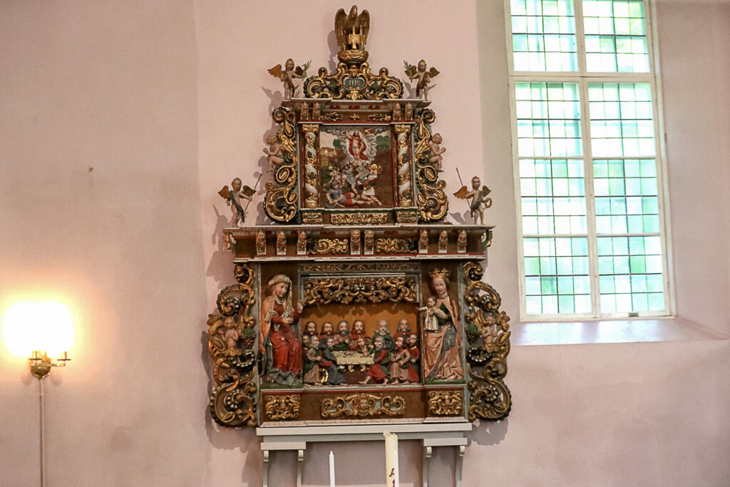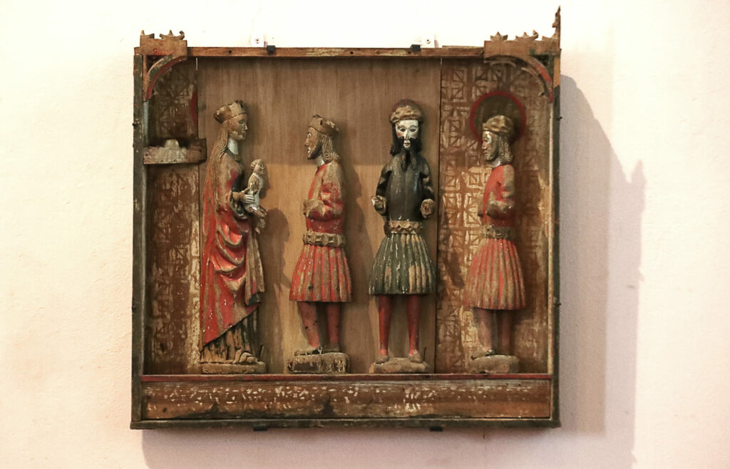 Kirkossa on esillä keskiosa alttarikaapista, jonka puuveistokset esittävät Neitsyt Mariaa ja Jeesus-lasta sekä kolmea tietäjää.