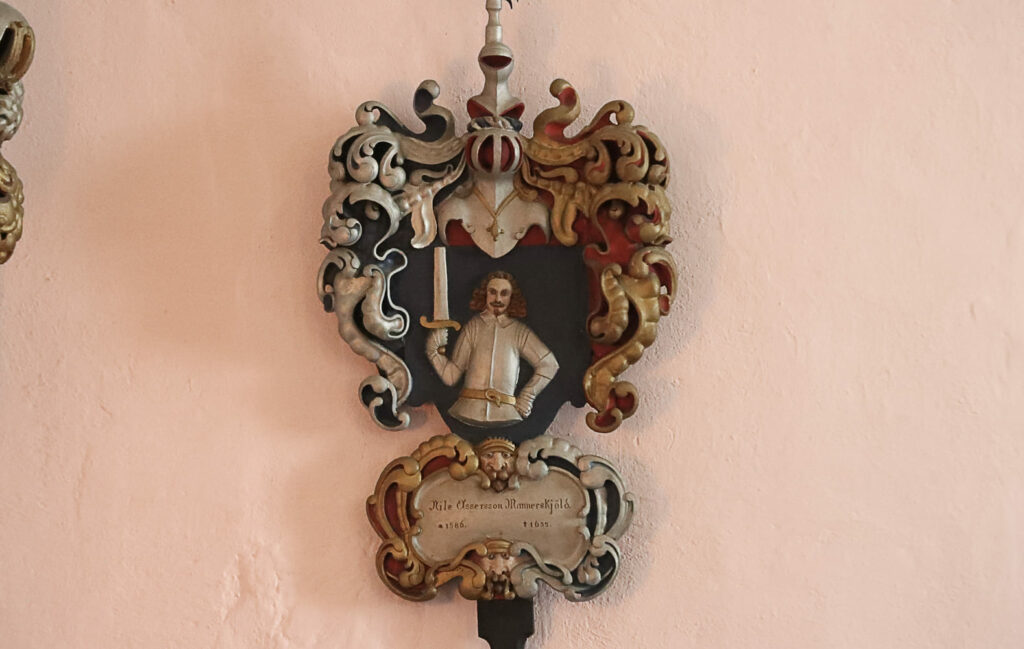 Halikon kivikirkossa värikkäät hautausvaakunat kertovat kahden merkittävän suvun, Hornien ja Armfeltien, poikkeuksellisen suuresta merkityksestä ja vaikutusvallasta.