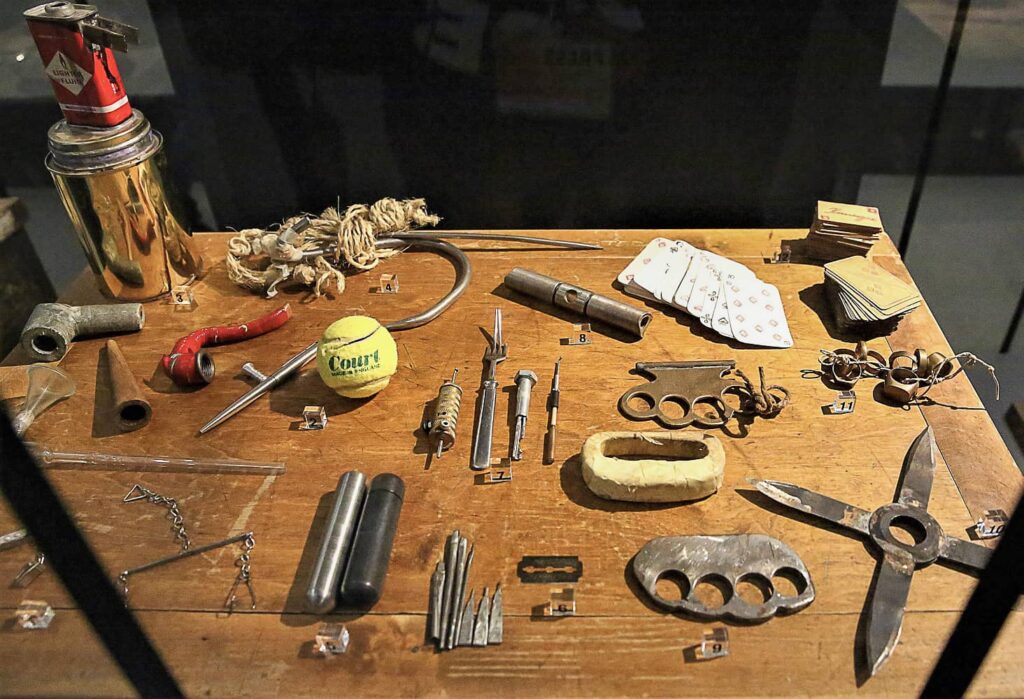 Takavarikoitujen esineiden joukossa on muun muassa pornograafiset pelikortit, sanomalehdestä kierretty tupakka ja sellijakkaraan askarreltu myllypeli. Tupakkaa ja huumeita pyrittiin salakuljettamaan vankilaan monin eri konstein, muun muassa peräsuoleen piilotettujen ”könttien” avulla.
