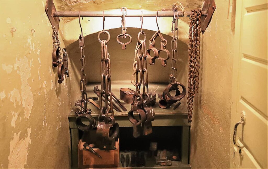Vitriinissä olevat liivinraudat kertovat vankien kuljettamisesta. Aikoinaan vanginkuljetukset kuuluivat maanomistajien velvollisuuksiin. Se lakkautettiin vasta vuonna 1927, ja samalla kuljetus siirrettiin vankilahallinnon alaisuuteen viranomaisten tehtäväksi.