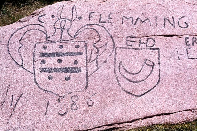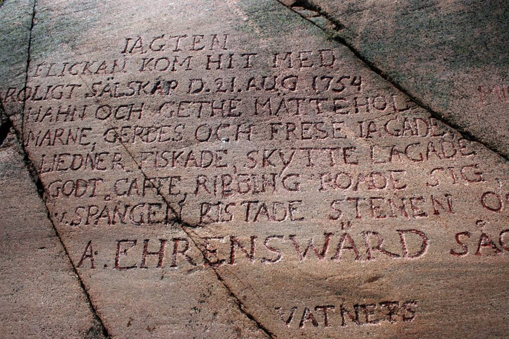 Aikansa kuluksi miehet kaivertelivat kallioon nimikirjaimiaan, Ruotsi-Suomen aatelissukujen vaakunoita ja laivojen nimiä. Joukossa on myös kaiverrettuna lyhyitä tarinoita. Moni laivoista kuljetti ruotsalaisten sotatarvikkeita ja sotilaita.