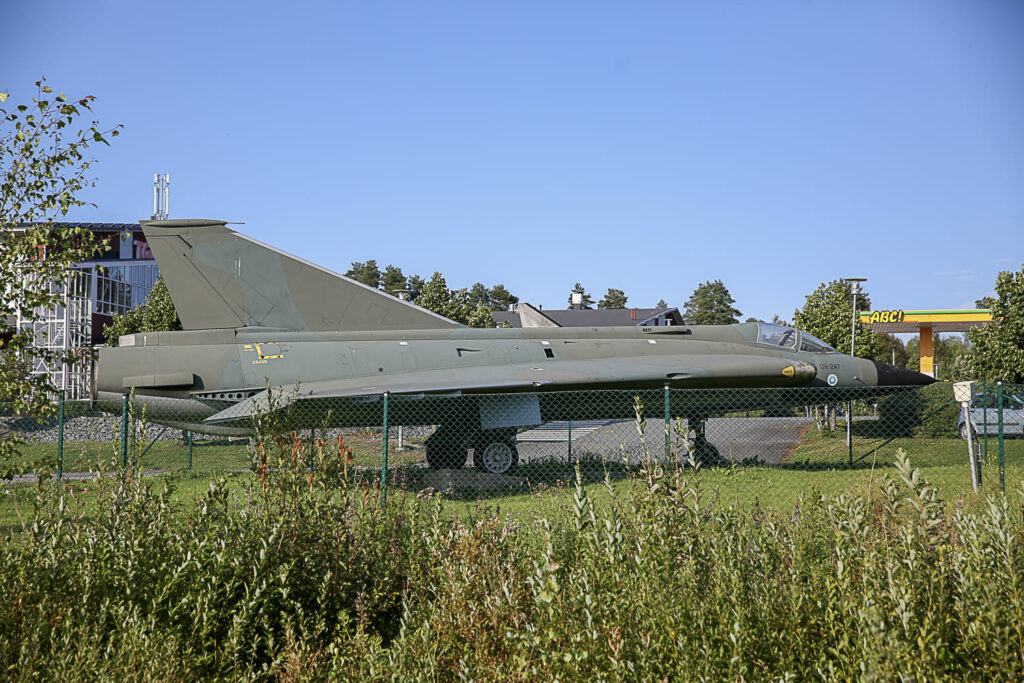 Kolmannen esillä olevan koneen moni tunnistaakin. Ilmavoimilla oli käytössä 48 ruotsalaisvalmisteista Saab J 35 Dragenia. Konetyypillä lennettiin vuodesta 1972 vuoteen 2000.