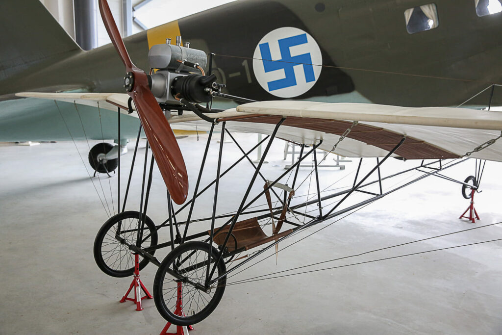 Nähtävänä on myös toisen keksijän, brasilialais-ranskalaisen Albereto Santos-Dumotin aikaansaannoksia. Hänen kehittämä lentolaite La Mademoiselle oli maailman ensimmäisiä moottorilentokoneita. Yksi tällainen kone ostettiin Suomeen, mutta lentoyritykset täällä epäonnistuivat. Koneesta tehty jäljitelmä on nyt esillä Hanssin-Jukan vieressä.