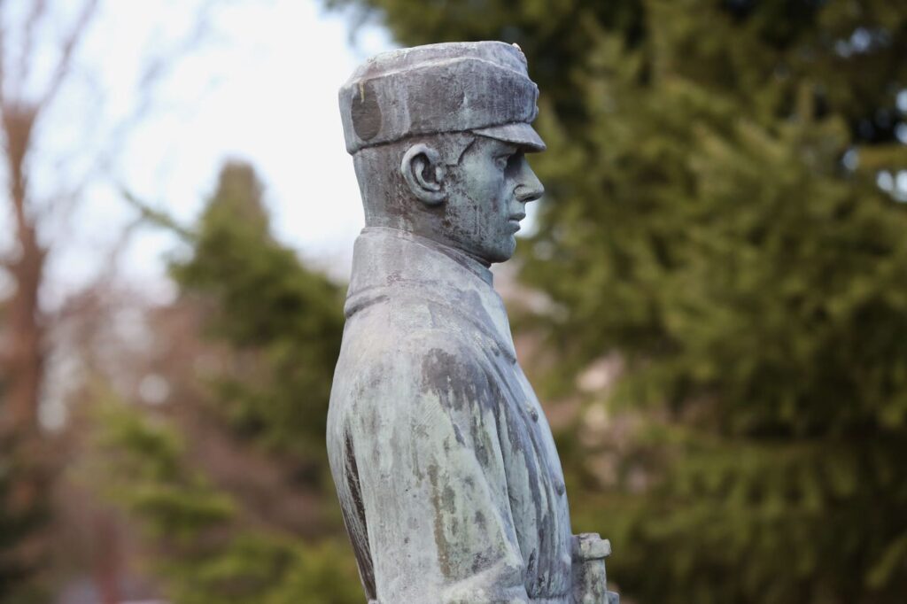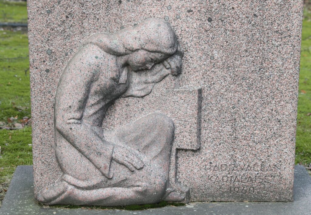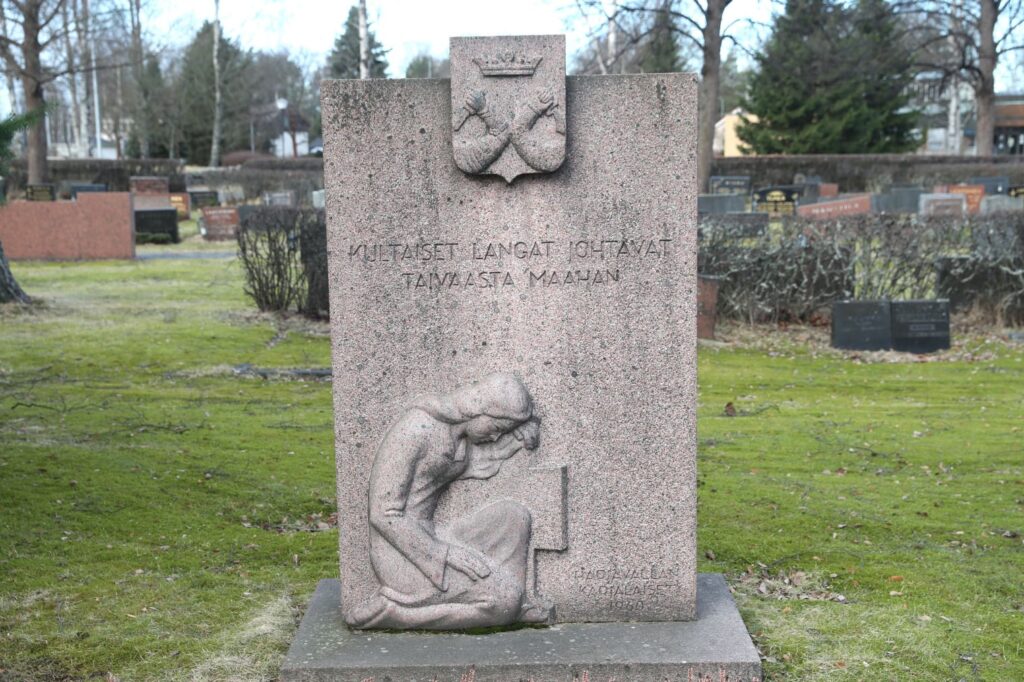 Hautausmaan puolella Sankarivainaja-alueella voi käydä katsomassa Harjavallassakin pitkään vaikuttaneen Emil Cedercreutzin (1879-1949) veistämää patsasta Vartijasotilas.