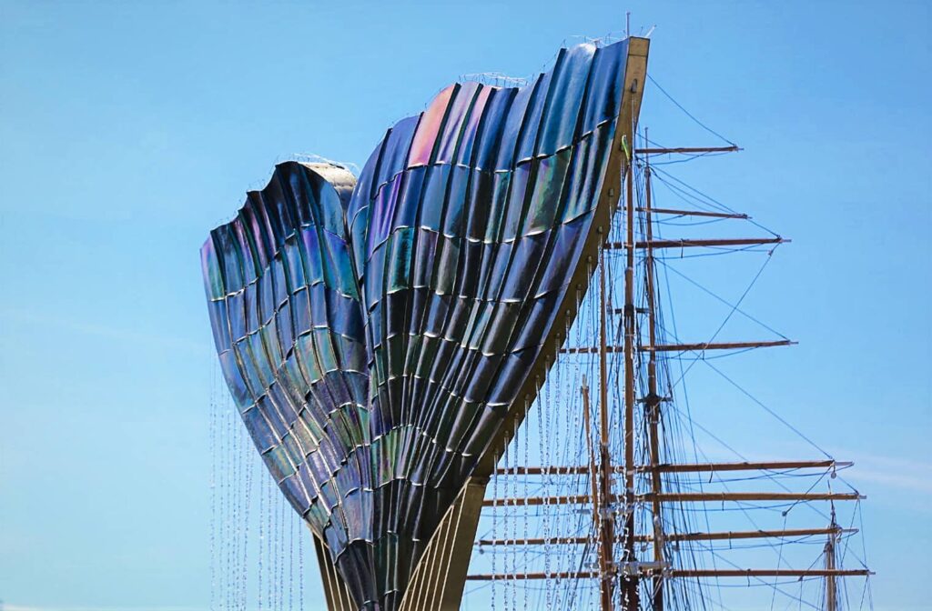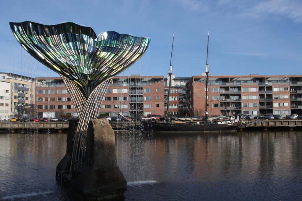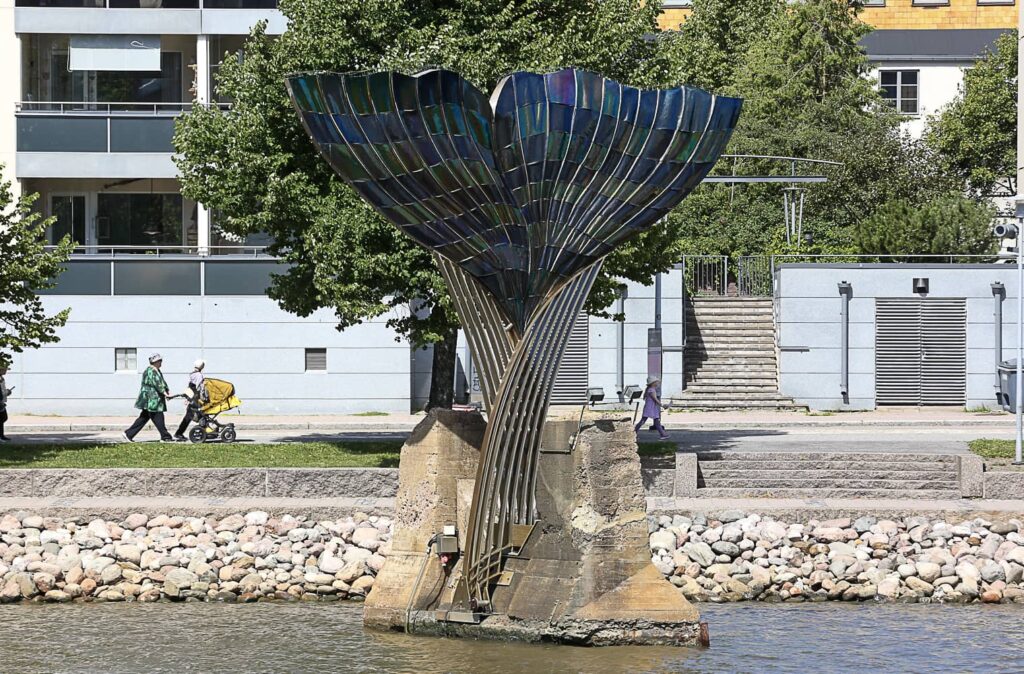 Aurajoessa lähellä Vierasvenesatamaa sijaitsee eräs pidetyimmistä Turun kaupungin ympäristötaideteoksista. Saksalaisen taiteilijan Achim Kühnin (s. 1942) Harmonia on ulkonäöltään näyttävä. Teos tunnetaan myös osuvasti nimellä Valaan pyrstö.