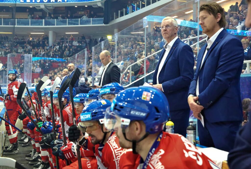 TPS 100 vuotta. Tutunnäköinen kaveri Tshekin vaihtoaitiossa. Itse asiassa heitä oli kaksi. Kari Jalonen tuli Tshekin maajoukkueen päävalmentajaksi jo aikaisemmin. Karjala-turnauksessa Jalosen apuna, virallisesti videovalmentajana, oli Fredrik Norrena.