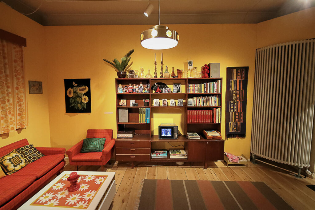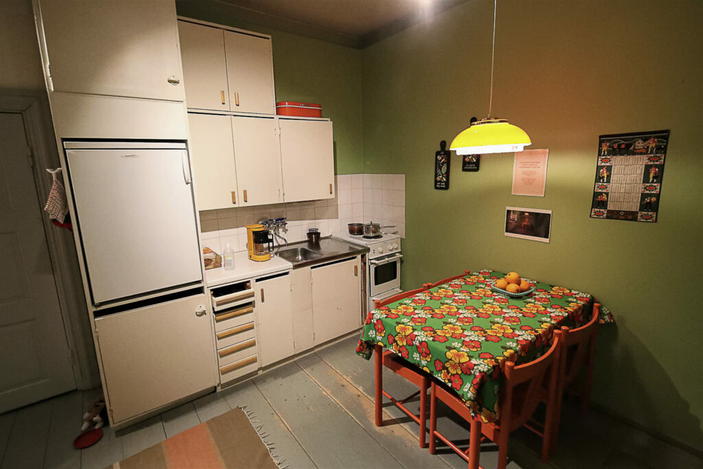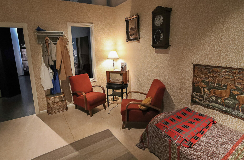 Näyttelyyn on myös rakennettu aidonnäköinen 1950-luvun koti rautahetekoineen. Radiosta voi kuunnella aikakauden tunnettuja ohjelmia ja iskelmiä.
