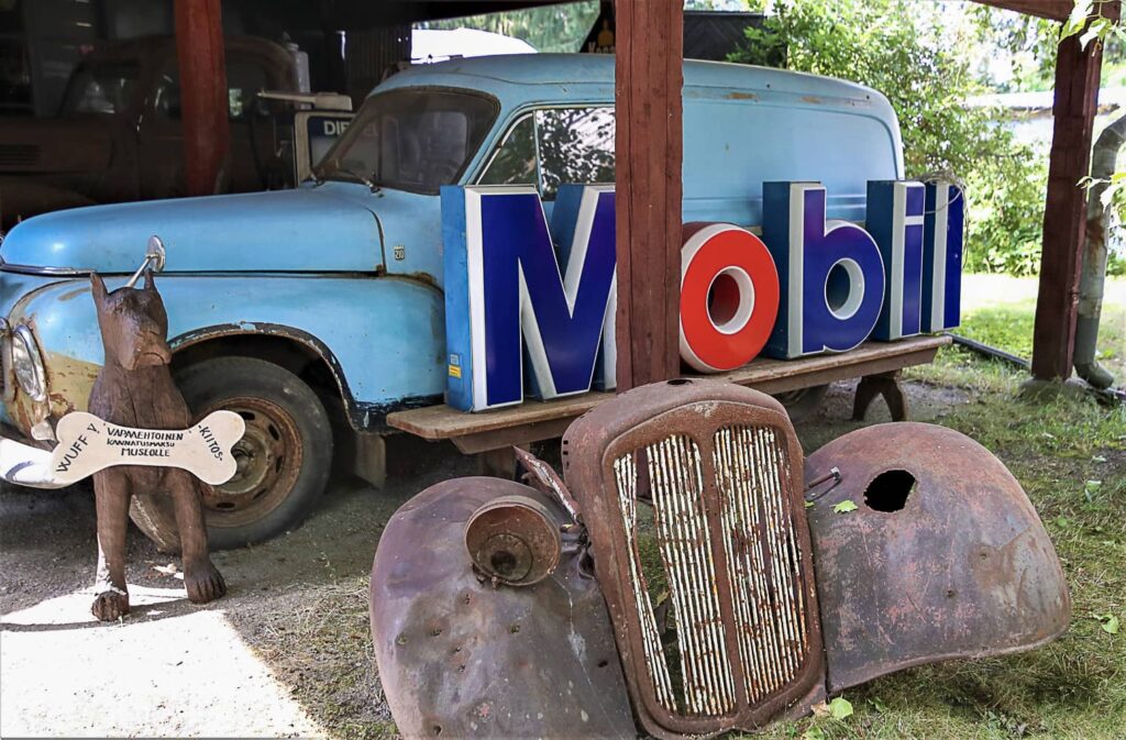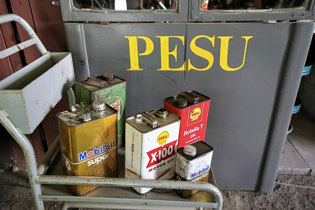 Nostalgiabensiksessä voi ihailla vanhoja öljypurkkeja, työkaluja sekä muita bensa-asemilta ja autokorjaamoilta tuttuja tavaroita vuosikymmenien takaa. Onpa pari autoakin löytänyt paikkansa bensa-aseman edustalta.