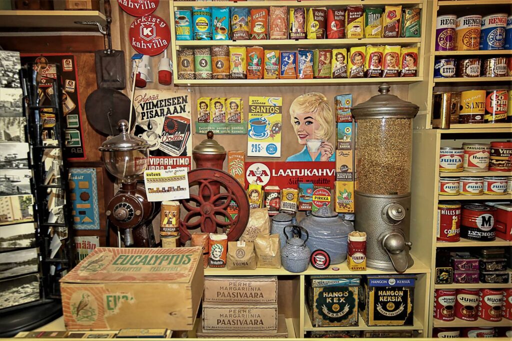 Pääosa kauppamuseon esineistä on 1900-luvun alusta 1970-luvulle. Viivakoodillisia tavaroita ei kokoelmasta löydy. Eräs arvokkaimmista esineistä on 1930-luvun Brunnbergin makeisautomaatti, joka on löytynyt sattumalta eräästä ladosta.