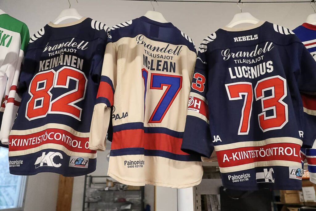 – Rantasen paitoja tehtiin sata kappaletta. Toyota Auto Center antoi aina yhden sellaisen, kun joku osti kaupasta auton. Kallion aito pelipaita on niiltä ajoilta, kun hän oli vielä Sakun Koivun kanssa nuoria poikia ja pääsivät pelaamaan vasta muutaman ottelun liigajoukkueessa.