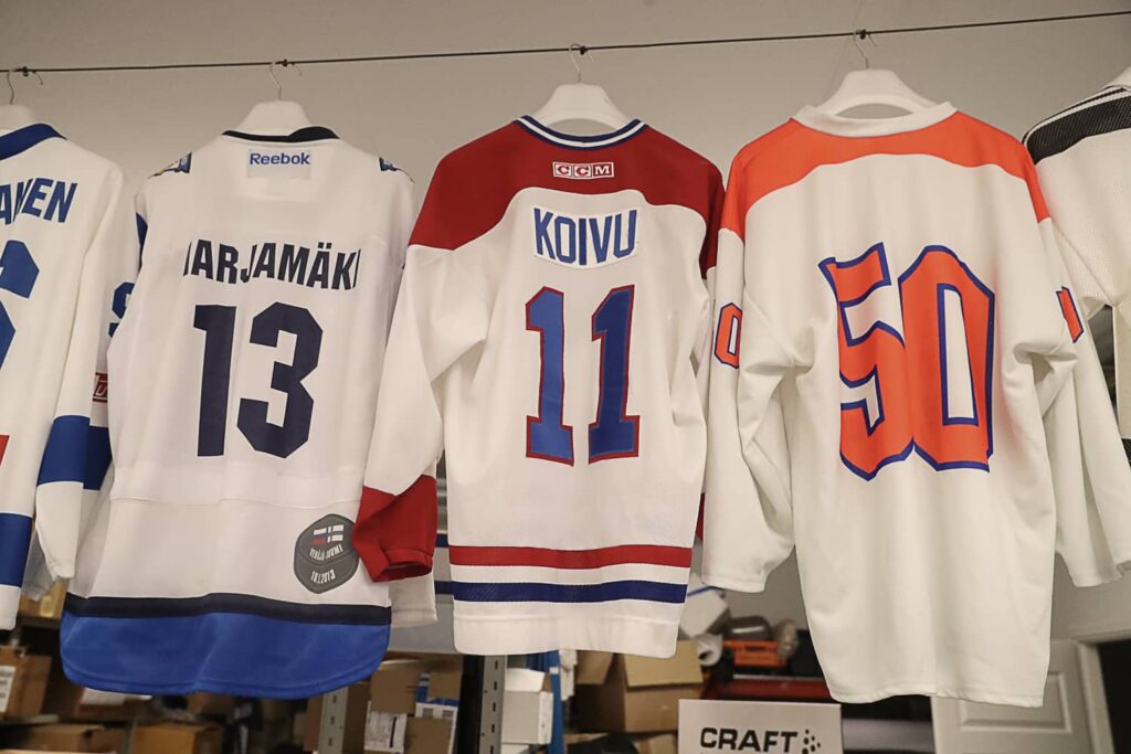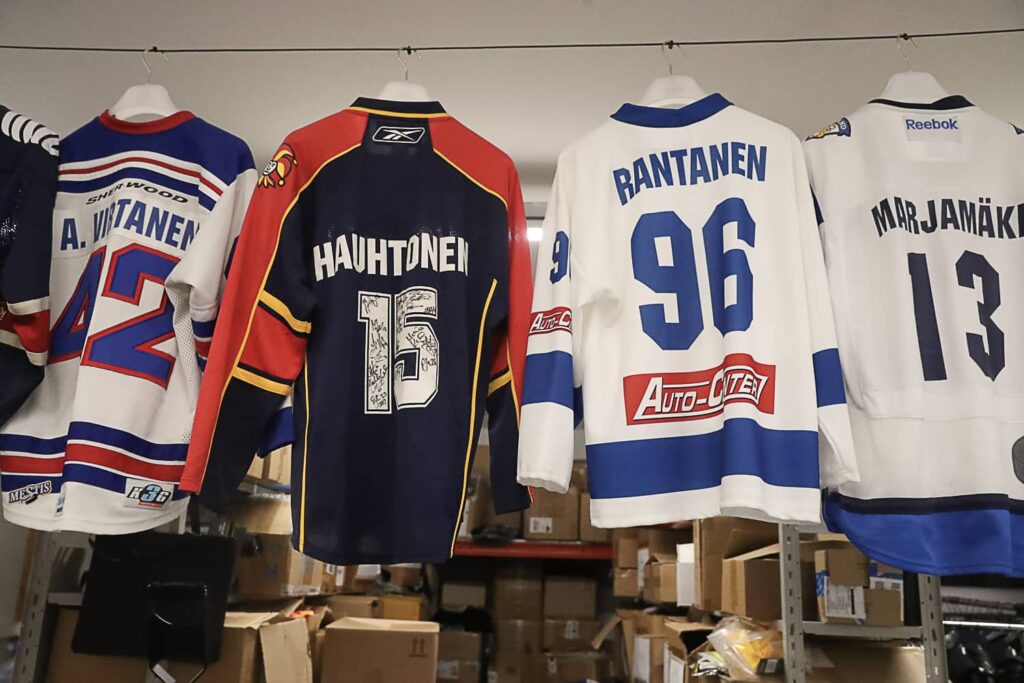– Niitä on vaikea laittaa järjestykseen, mutta yksi on Aki Keinäsen uran viimeinen pelipaita. Hän on eräs Mestiksen kovimmista pelaajista, jonka ennätyksiä tuskin tullaan enää rikkomaan. Jokaiseen paitaan liittyy aina omat muistot ja tarinat. Eräs sellainen on Janne Hauhtosen pelipaita, kun hän pelasi Jokereissa Ika Lehtosen valmentamana. Se tuotiin minulle henkilökohtaisesti ottelun jälkeen aitioon.