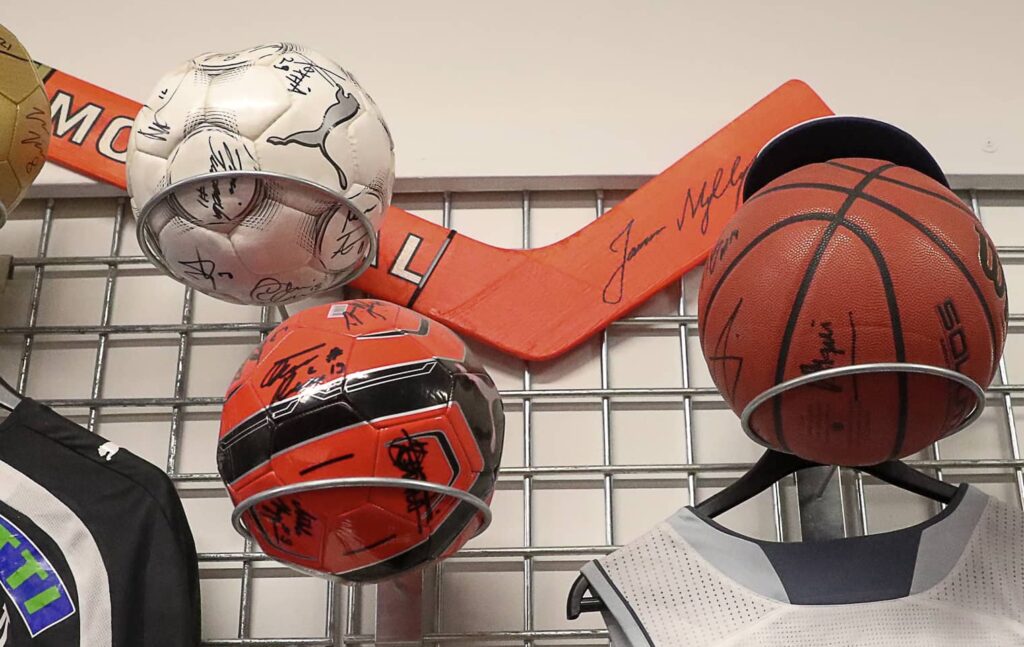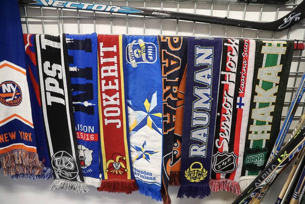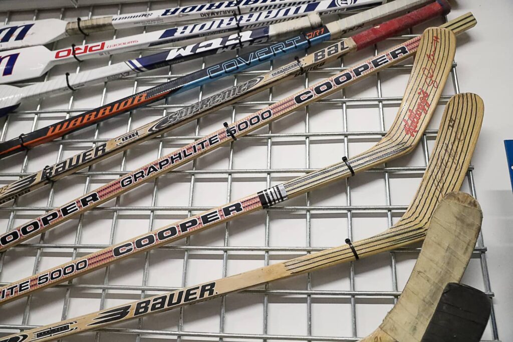 – On hyväntekeväisyystapahtumasta hankittu maalivahti Juuso Saroksen aito NHL-maila, vanhoista mailoista mukana on Pekka Rauteen, Jarmo Myllyksen ja Jarkko Varvion, sitten on Saku Koivun, Aki Keinäsen, Ville Leinon, Marco Tuokon puu- sekä komposiittimaila…mailoja on niin paljon, että on vaikeuksia edes muistaa kaikkia.