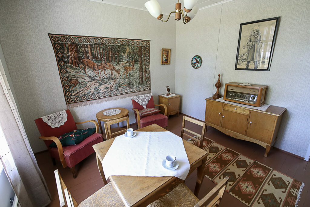 Laurin aikana rakennuksen toisessa päässä oli hänen asuntonsa. Myös se on sisustettu Parkkimäen aikaisilla Jurvassa valmistetuilla huonekaluilla.