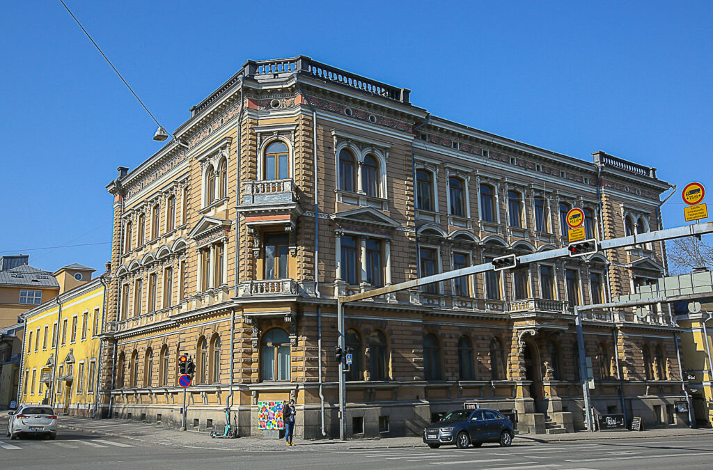 Vaikka rakennus on eräs Turun komeimpia, on se jäänyt vähemmälle huomiolle. Syynä on sen sijainti kahden vilkkaasti liikennöidyn kadun kulmassa. Autolla porhaltaa nopeasti ohi eikä bussin ikkunastakaan oikein ehdi ihailla komeaa taloa. Kiireisen jalankulkijan kannattaa hetkeksi pysähtyä katselemaan rakennuksen yksityiskohtia.