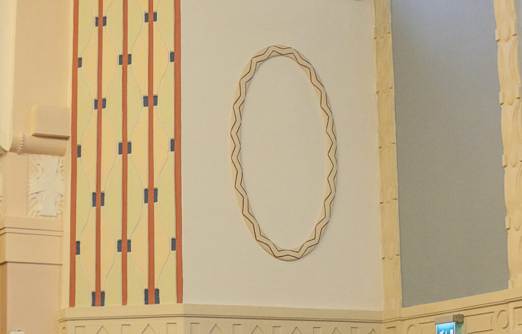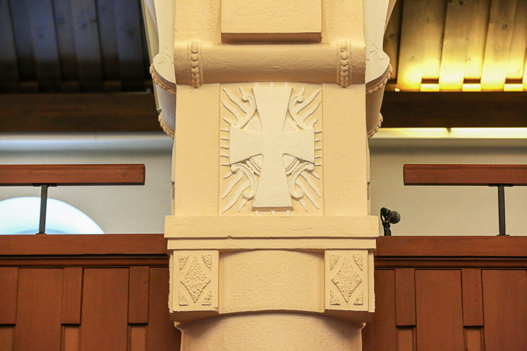 Kirkon melko hillitystä maalauskoristelusta ja lasimosaiikeista vastasi arkkitehti Launis. Lopputulos on tyylikäs. Suomessa on toki jugend-kirkkoja, jotka ovat huomattavasti koristeellisempiakin kuin Kalvolan kirkko.