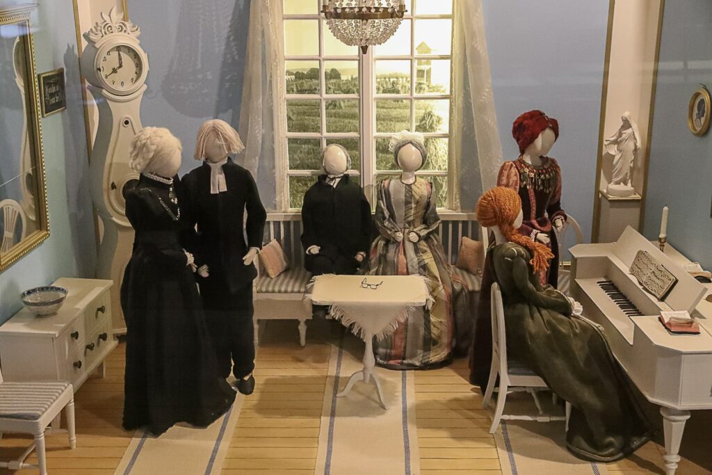 Ensimmäisen kerroksen lasivitriineissä esitellään perinteisiä ammatteja, miesten ammatteja vasemmalla ja naisten oikealla. Museon erikoisuus on toisen kerroksen historialliset nuket, jotka esittelevät muun muassa Kaarina Maununtytärtä Liuksialan kartanossa ja Kaarina Hannuntytär Vääksyn kartanossa.