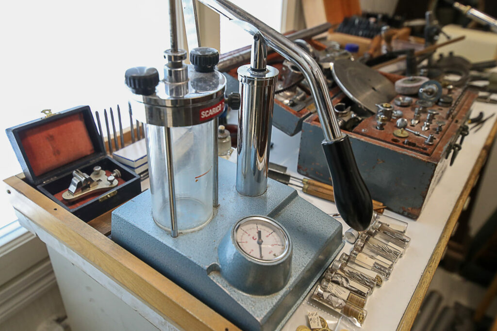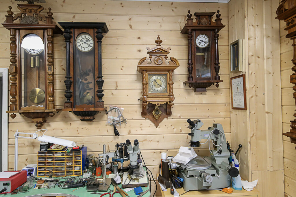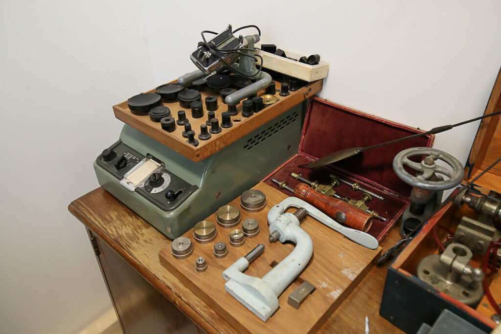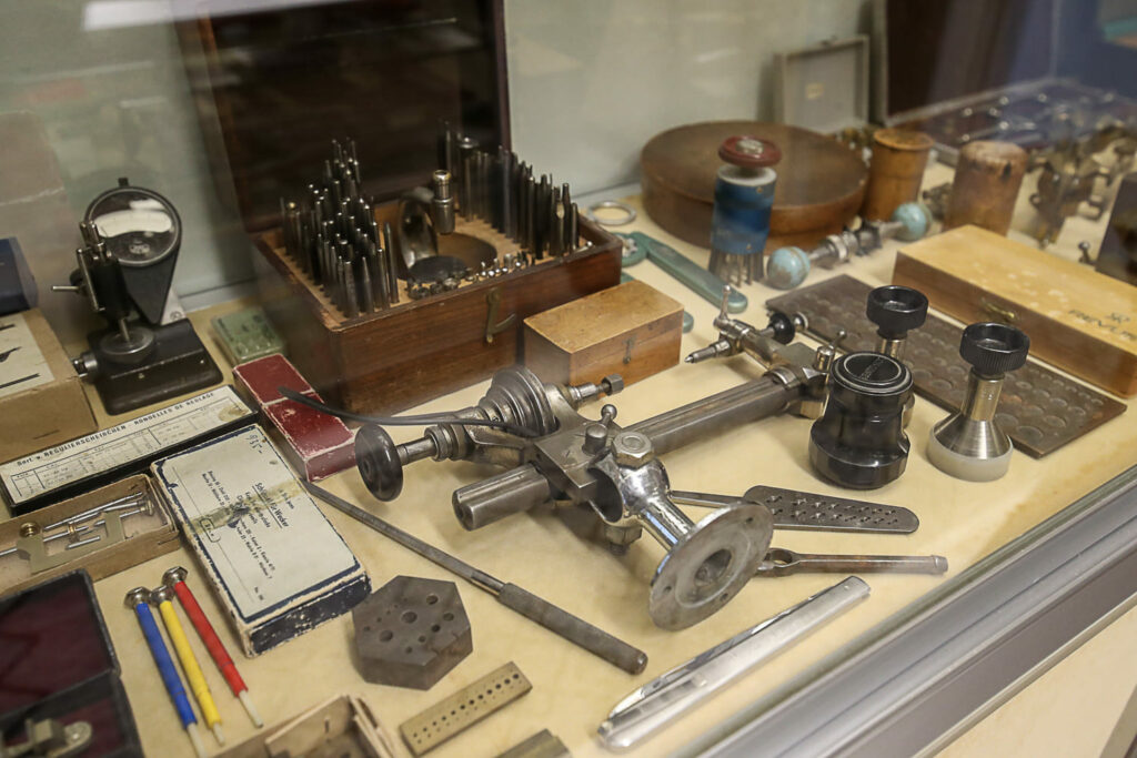 Lukemattomien kellojen ohella tilat täyttyvät suurikokoisista laitteista, kuten porakoneista, sorveista ja jyrsimistä. Näkymä on kuin olisi metallityöpajassa. Laitteet ovat hienomekaniikasta vähemmän ymmärtävälle mystisen näköisiä.