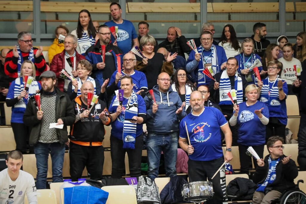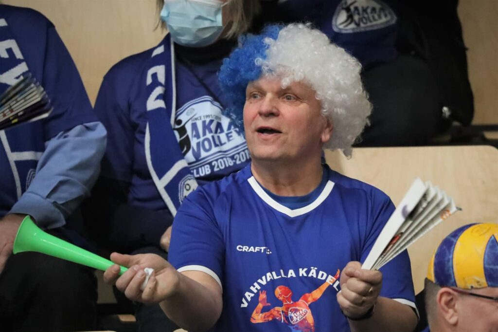 – Pöyhösen Paavon kanssa aikoinaan mietittiin, miten omaa joukkuetta voisi kannustaa myös vieraspeleissä. Sitä kulttuuriahan meillä Suomessa ei suuremmin ole. Aloimme kehittämään kannattajille yhteisiä juttuja, kuten kaikille samanlainen sininen faniklubin paita. Ne puetaan päälle otteluihin, kertoo kannattajaryhmän yksi vetäjistä Mika Paloluoma.
