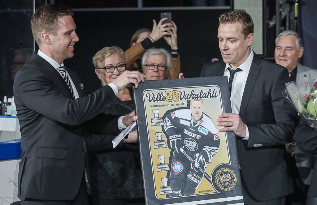 Eräs yksityiskohta Vahalahden kohdalla ihmetyttää. Turkuhallin katossa ei ole pelipaitaa numeroa 28. Seuralegendan paita puuttuu. Onneksi Vahalahden uraa on juhlittu myös Turussa. Liigajoukkueen nykyinen mailapoika Ville Vahalahti vaihtoi haalarit juhlapukuun ja sai olla TPS-Lukko -ottelun arvovieras tammikuussa 2020.