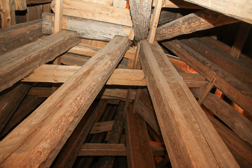 Kellotapulissa on erikoinen rakenne, sillä siinä on kaksi rakennusta sisäkkäin. Rahikaisen käsialaa on uloimmainen kerros. Kellotapulin torniin pääsee kiipeämään, jos uskaltaa kivuta jyrkkiä portaita pitkin. Alaspäin tulo on vielä vaikeampaa.