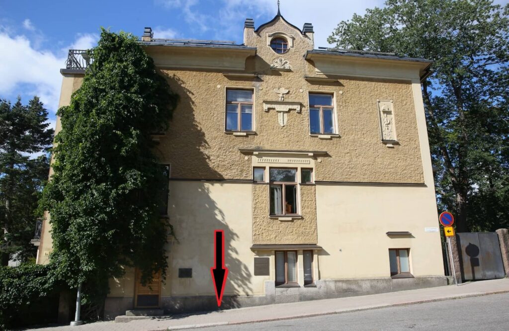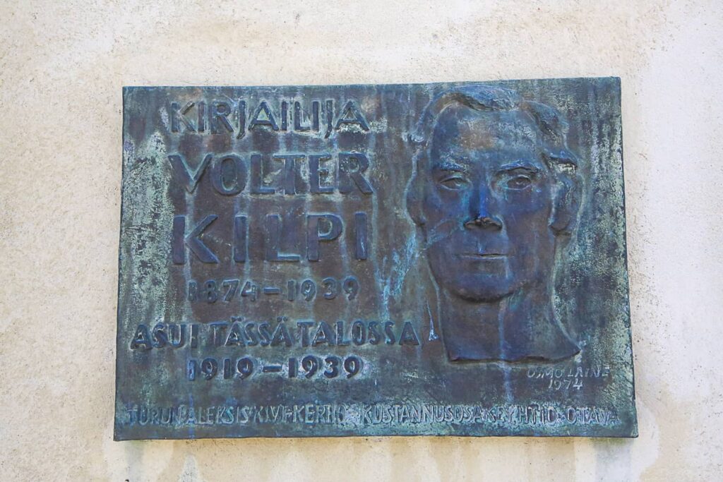 Kuten laatta jugendrakennuksen seinässä kertoo, myös kirjailija Volter Kilpi asui aikoinaan tässä talossa.