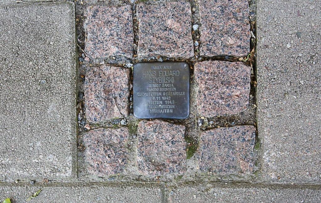 ”Tässä asui Hans Eduard Szybilski. S. 1907 Saksa Pakeni Suomeen. Luovutettiin Gestaopolle 6.11.1942 Vietiin Auschwitziin. Murhattiin.”