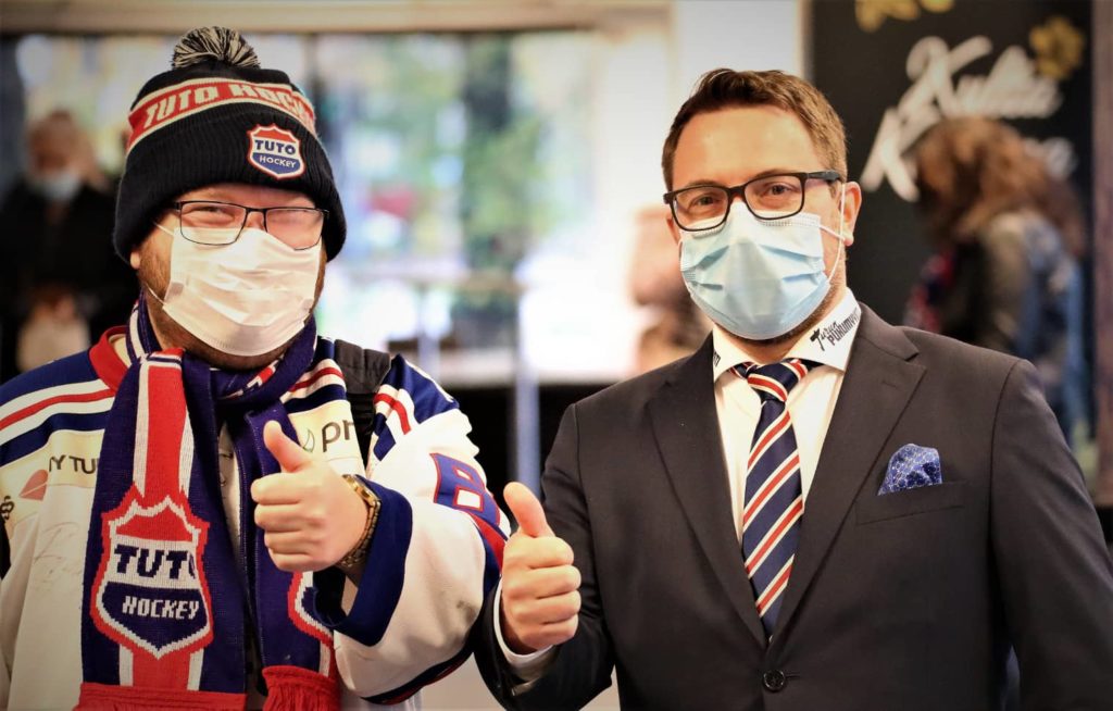 – Kupittaalle mahtuu vajaa 3 000 katsojaa. Kun nykyisillä rajoituksilla voimme ottaa 1 200 katsojaa, se tarkoittaa 35 prosentin täyttöastetta. Nyt otteluissa on kuitenkin ollut vain puolet siitä, mitä voisimme ottaa sisään. Käytännössä se tarkoittaa, että turvavälien ylläpitäminen onnistuu helposti. Aikaisemmin valokuva puolityhjästä hallista on ollut noloa, mutta nyt se onkin etu. Kiekkomatsissa käyminen on turvallista.