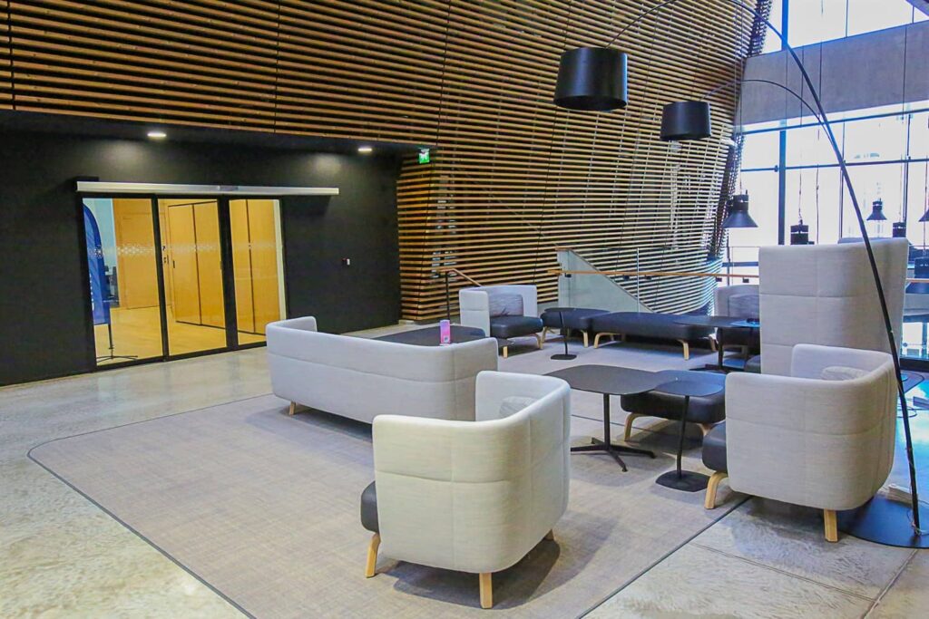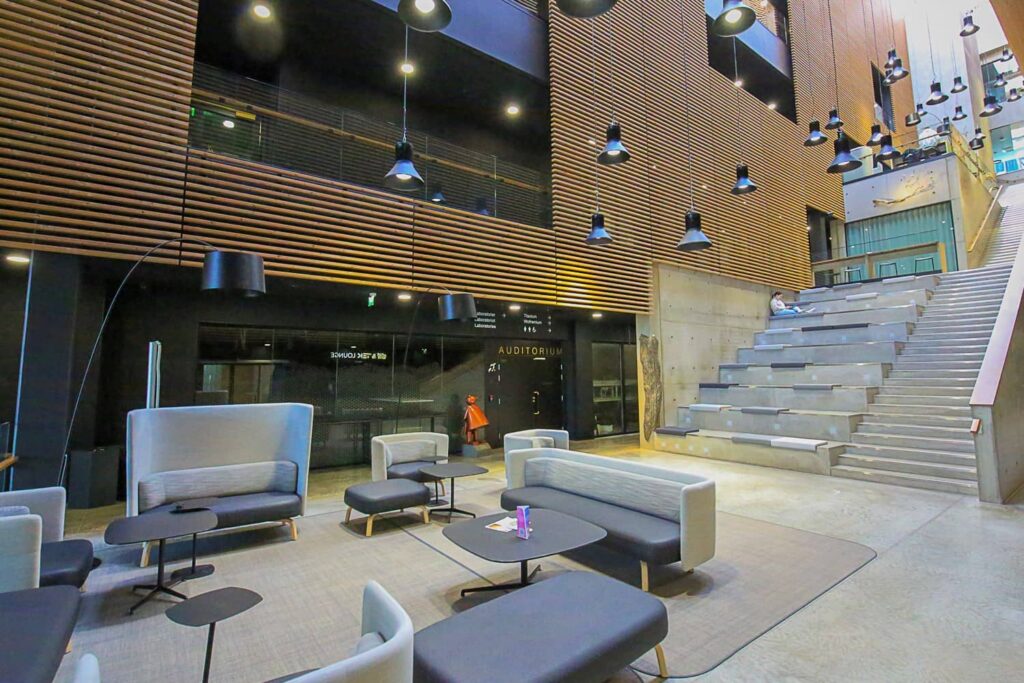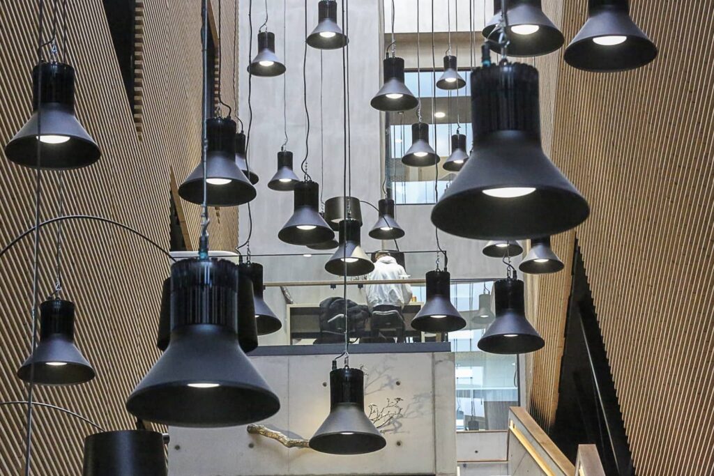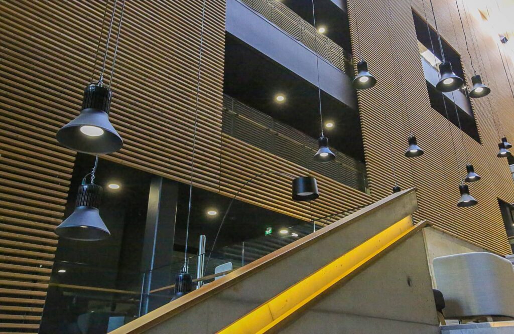Myös valaistukseen on kiinnitetty erityistä huomiota. Korkeaan atriumiin tuovat näyttävyyttä riippuvalaisimet.