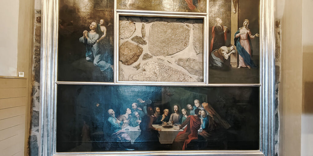 Länsisiiven urkuparven seinällä (Kristus Getsemanessa) sekä vastakkaisella puolella pohjoispuolen parvella (Kristus ja Maria Magdalena) sijaitsevat paikallisen taiteilijan Kaarlo Enqvist-Atran (1879-1961) maalaamat värikkäät alttaritaulut vuodelta 1902.