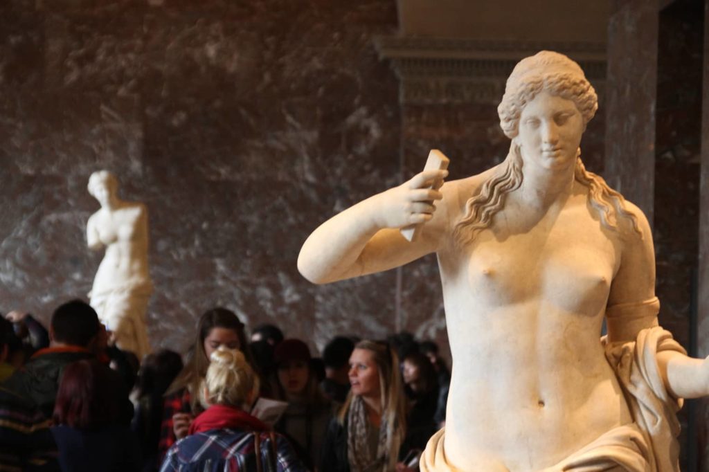 Milon Venus on Louvren veistoksista kuuluisin. Marmoriveistos ajoittuu aikaan ennen ajanlaskuamme, mutta se löydettiin vasta vuonna 1820 kreikkalaiselta Meloksen saarelta. Sekin, kuten monet muutkin Louvren aarteet, oli Ranskan kuninkaan omaisuutta. Naisille vinkiksi: rakkauden jumalatar Afroditea esittävän puolialastoman figuurin muotoja pidetään täydellisinä, mittasuhteiltaan kauniin naisen vertauskuvana.