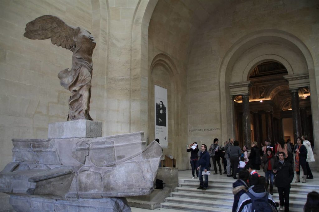 Milon Venuksen tavoin Samotharaken Nike on Louvren pakollisia nähtävyyksiä. Sitäkään ei voi olla huomaamatta. Tuulessa lepattavine vaatteineen voiton jumalatar on sijoitettu näkyvälle paikalle, nousevien portaiden yläpäähän. Sekään ei haittaa, vaikka patsas on pahasti vahingoittunut. Niken ympärillä parveilee aina runsaasti uteliaita.