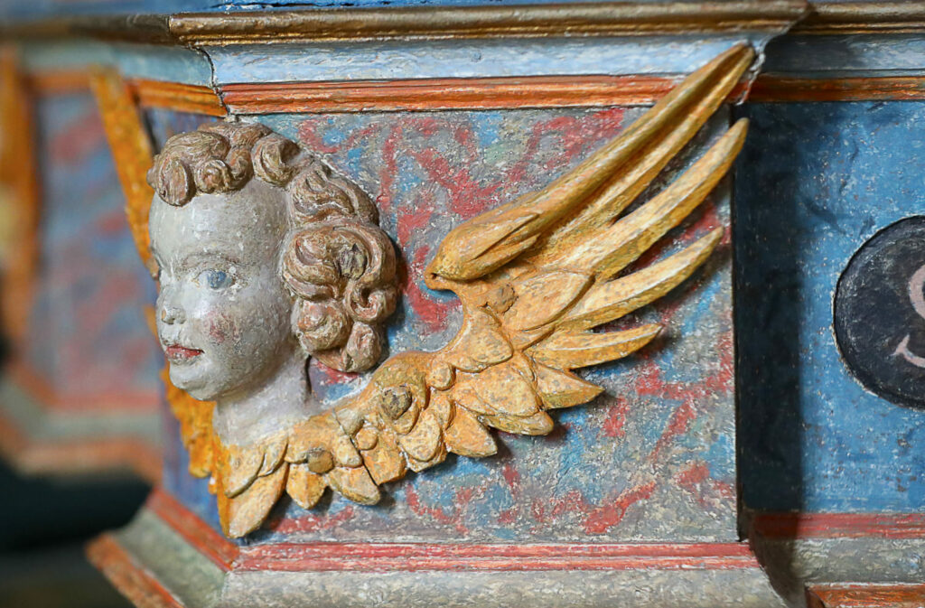 Seiniä ja holveja koristavat 1400-luvun entisöidyt kalkkimaalaukset vaikuttavat alkeellisen naivistisilta, osin jopa kömpelösti tehdyiltä. Nähtävänä on muun muassa hansalaivoja, pyhimysten kuvia, linnoja ja jopa keskiaikainen hakaristi. Puinen krusifiksi ja lyypekkiläinen alttarikaappi, kirkon arvokkaimmat aarteet, ovat vuosisatoja vanhoja. Saarnastuoli on 1600-luvulta.