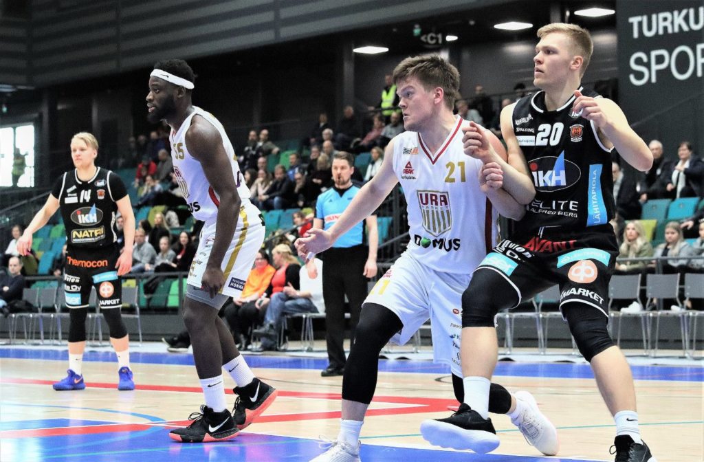 Aleksi Akpaso, Pyry Rainamaa ja Mikael Sandberg. Kaikki ovat parhaassa peli-iässä lopettaneita Ura Basketin koripalloilijoita. Kauppakorkeakoulusta juuri valmistunut ”Ässä” Sandberg on todennut tilipussin kolminkertaistuneen siviiliin siirtymisen myötä.