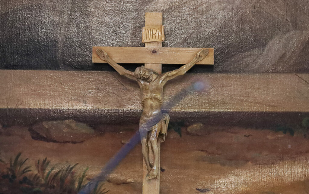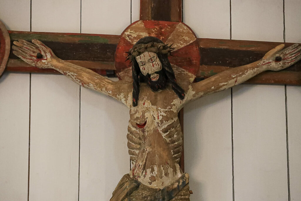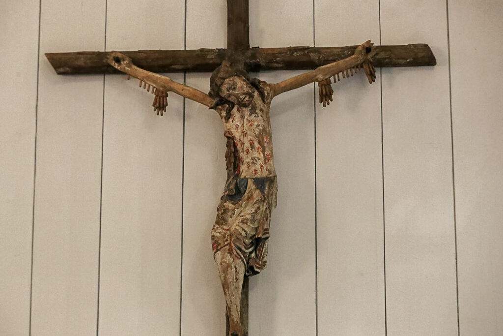 Marttilan kirkon vanhin veistos, 1340-luvun krusifiksi, on ripustettu kirkkosalin oikeanpuoleiselle seinälle, saarnastuolin lähelle. Metrin korkuinen puuveistos on yksityiskohdiltaan vaikuttavan näköinen. Ristiinnaulitulle on saatu tuskainen ilme kasvoilleen.