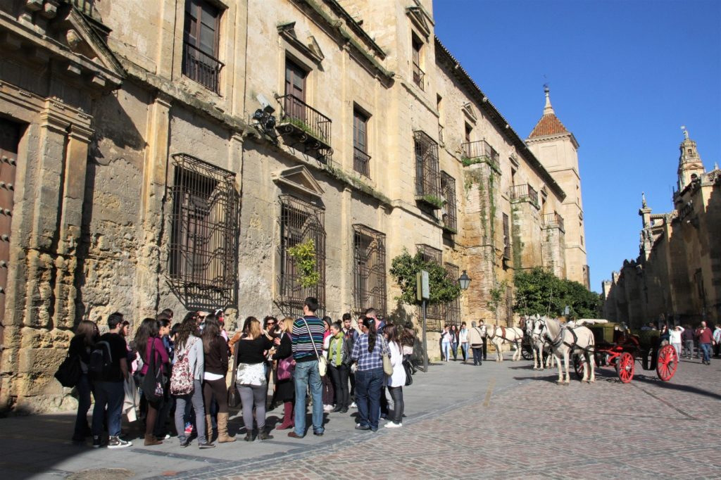 Monien muiden moskeijojen tavoin Mezquita on ulkopuolelta vaatimaton. Neliönmallinen monumentti vaikuttaa enemmänkin linnoitukselta kuin islamilaisen maailman kauneimmalta rakennukselta. Moskeijan ulkopuolella vaeltaa useita turistiryhmiä, vaikka varsinainen matkailusesonki ei ole vielä alkanutkaan. Mitä se onkaan kesällä. Córdoban moskeija on eräs Espanjan suosituimmista nähtävyyksistä.