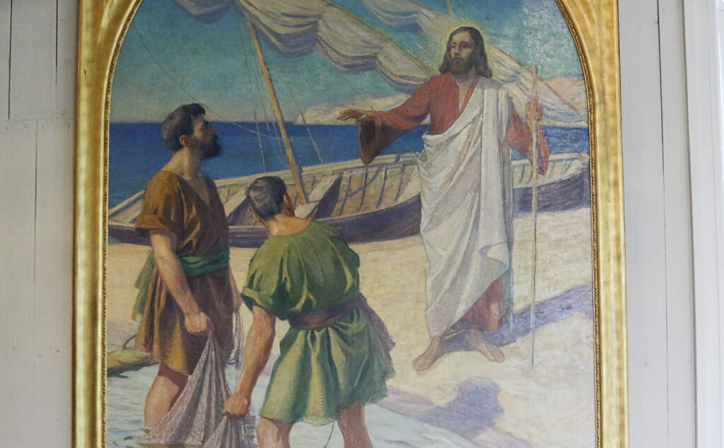 Alttaritauluna oli Väinö Blomstedtin (1871-1947) hänelle ominainen värikäs maalaus Andreaan ja Simon Pietarin kutsuminen, joka on nyt sijoitettu näyttävälle paikalle kirkkosalin pohjoiselle sivuseinälle. Blomstedt tunnetaan kansallisromanttisista maalauksistaan.